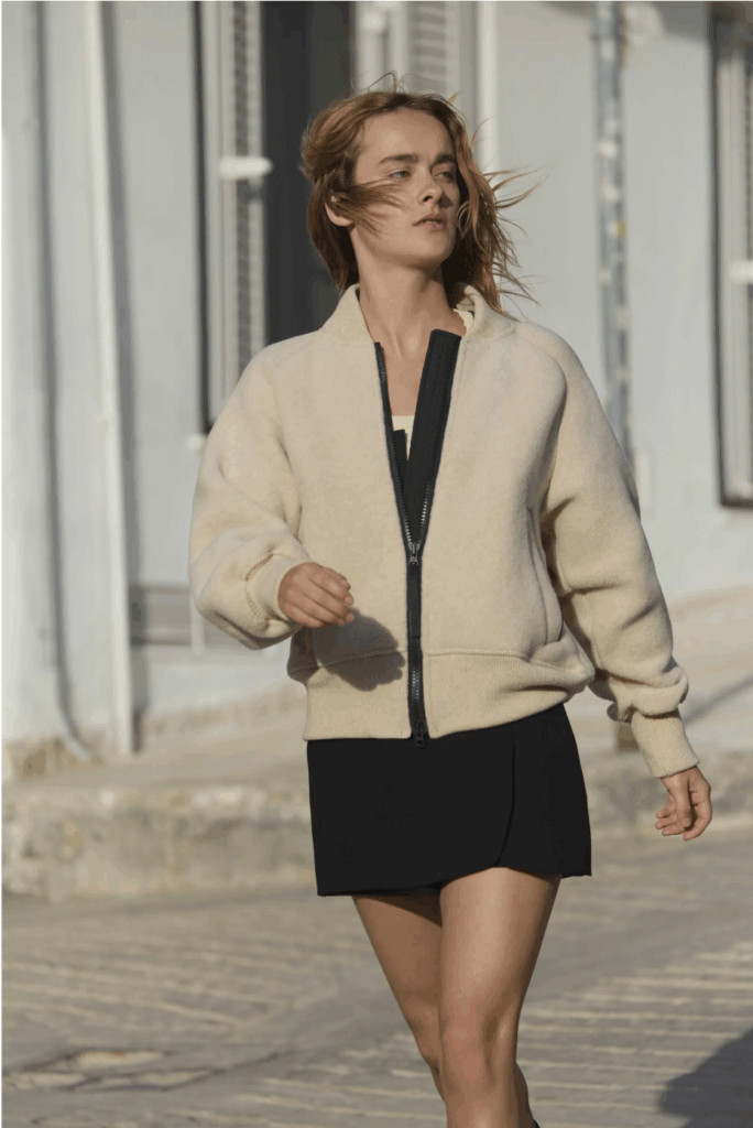 - Brighten up everyday looks with vibrant colors, and balance with simple neutrals for a more balanced look. – Create a casual yet energetic urban outdoor look with a versatile jacket and sweatpants.