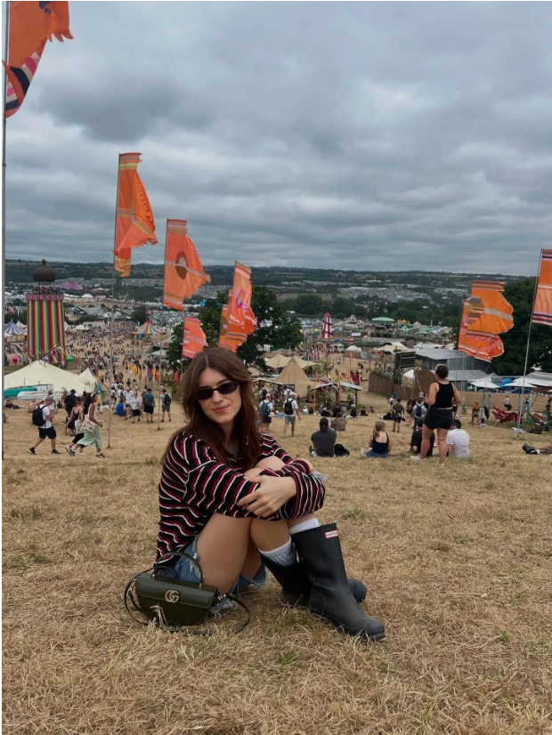 Black or cherry red Hunter boots, slouched over a miniskirt and chunky knit socks, echo Kate Moss’s music festival style, exuding a rebellious and free-spirited spirit.