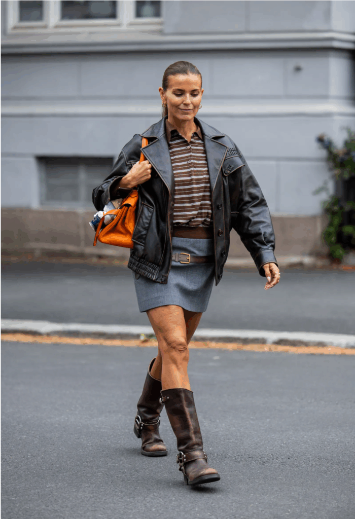 Mixed with flowing dresses and soft knits, biker boots add a tough edge, balancing romance with rebelliousness—perfect for autumn’s changing weather.